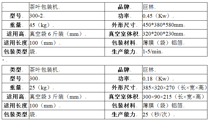 300型3斤茶葉真空包裝機(jī)上市使用.該機(jī)做到能真空、封口等一體化全自動(dòng)操作,具有包裝速度快、體積小、低噪音、低能耗,操作簡(jiǎn)單等特點(diǎn)。解決了茶葉小包裝真空的一系列煩瑣手工操作問(wèn)題、節(jié)省人力物力。