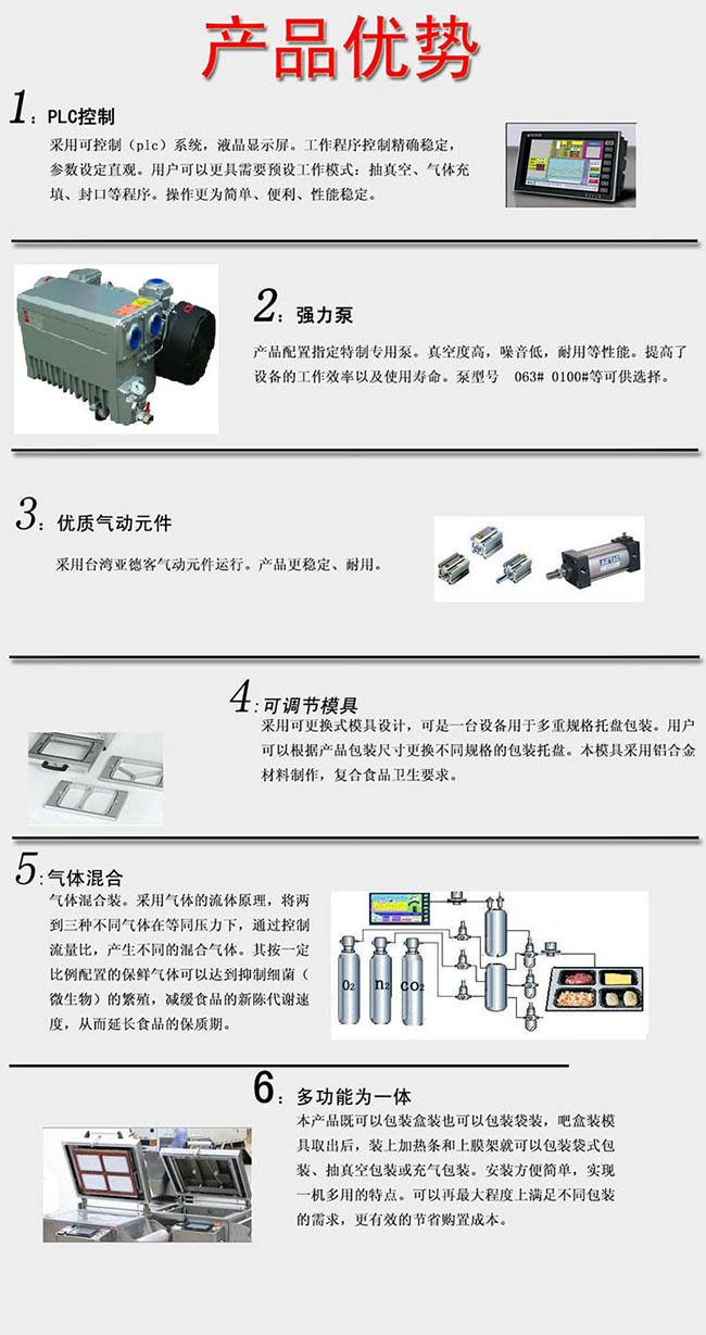 1. 本公司針對連鎖店、超市、專賣店、實驗室、小型食品生產企業等推出的一款突破性設計真理氣調保鮮包裝機。